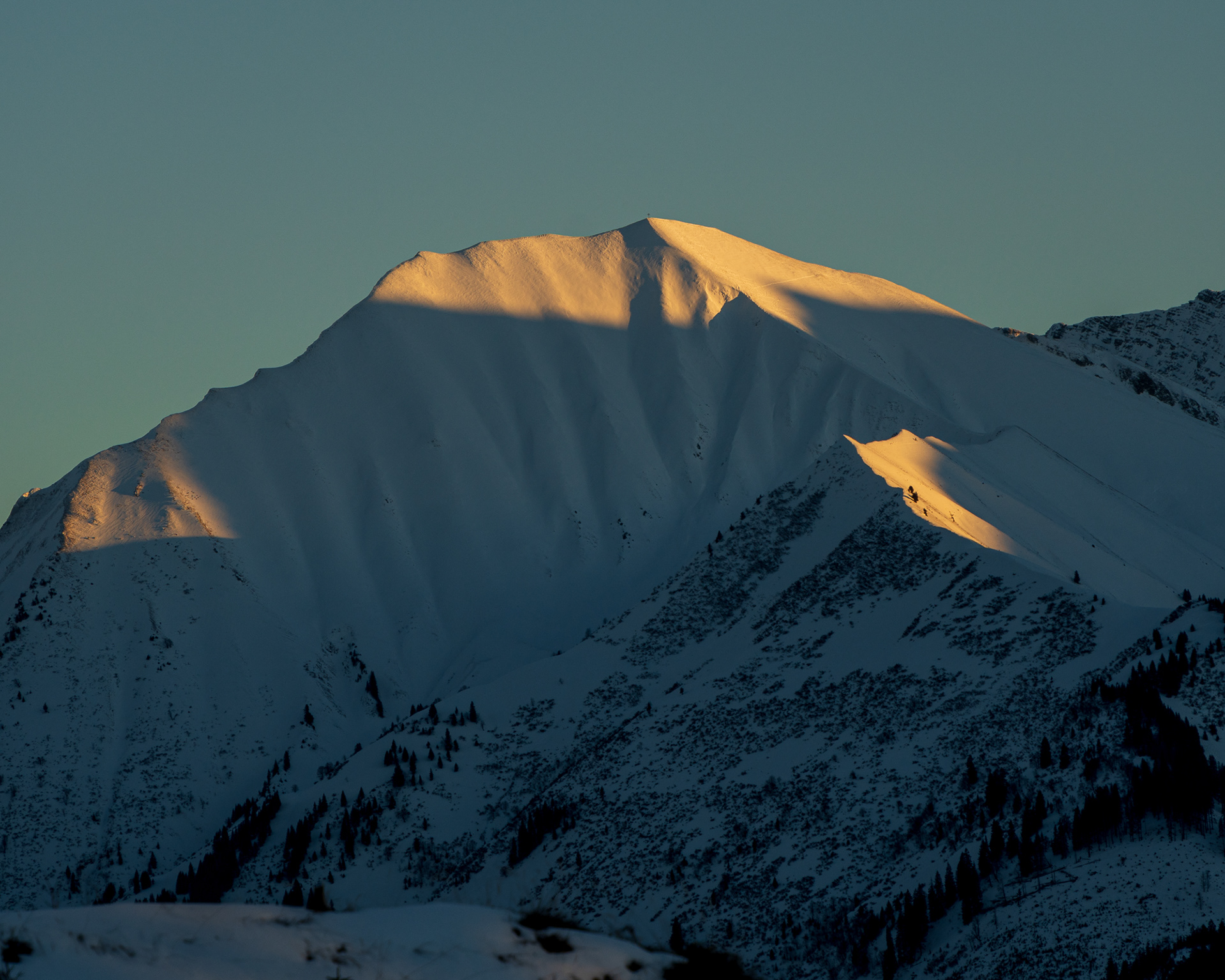The snow as a foreground adds interest to an otherwise flat scene